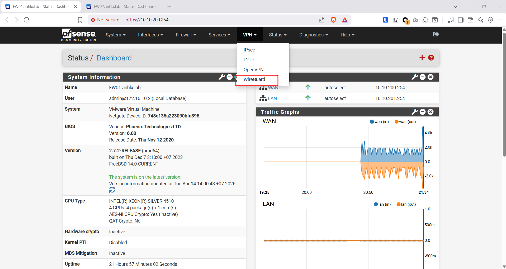 | FW02 | WG (tun_wg0) | 10.0.0.2 | /30 | WireGuard Tunnel — Listener |