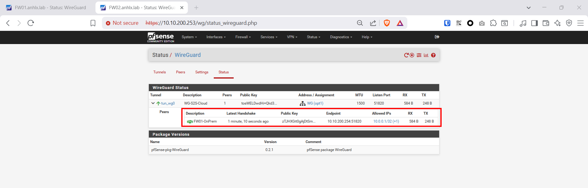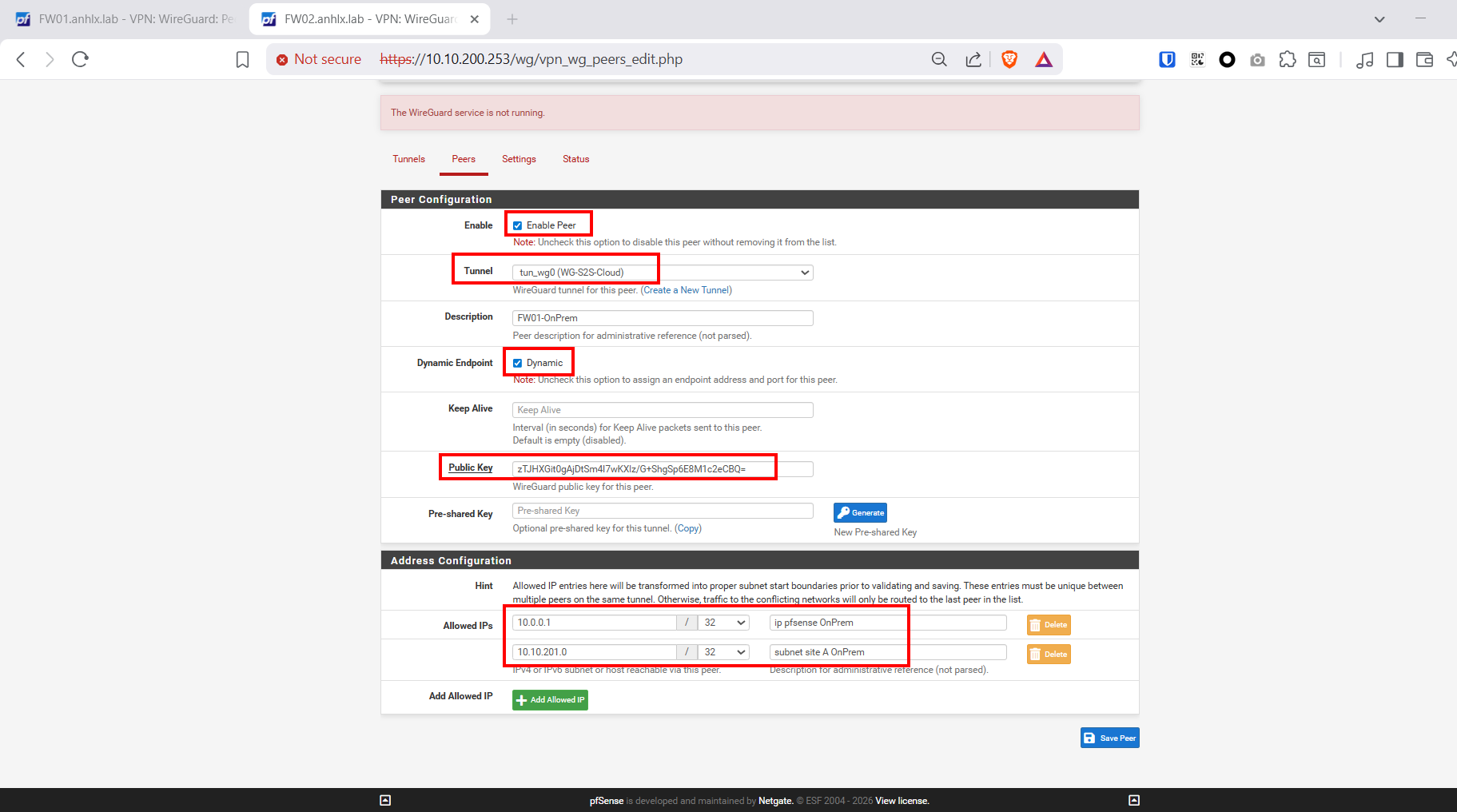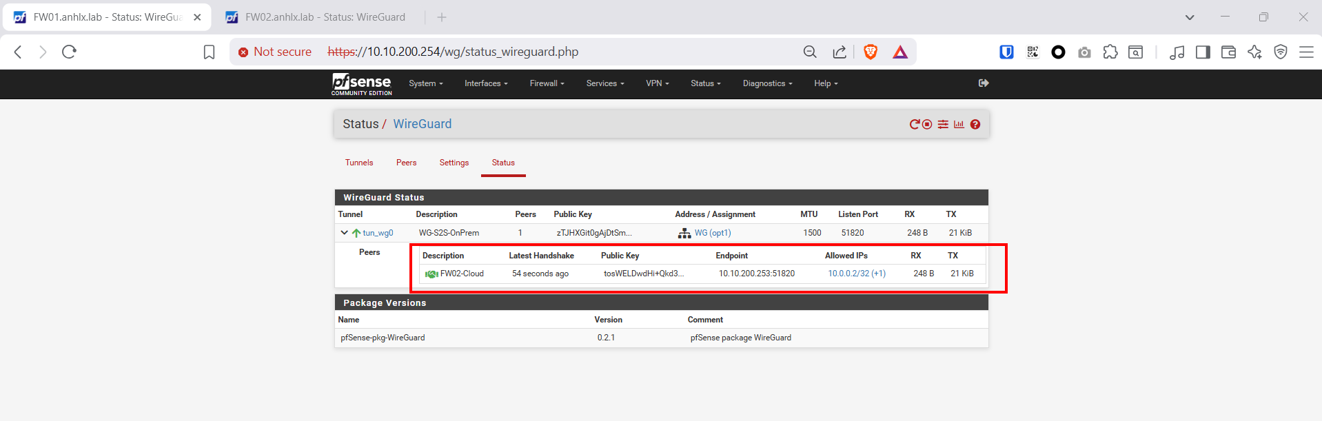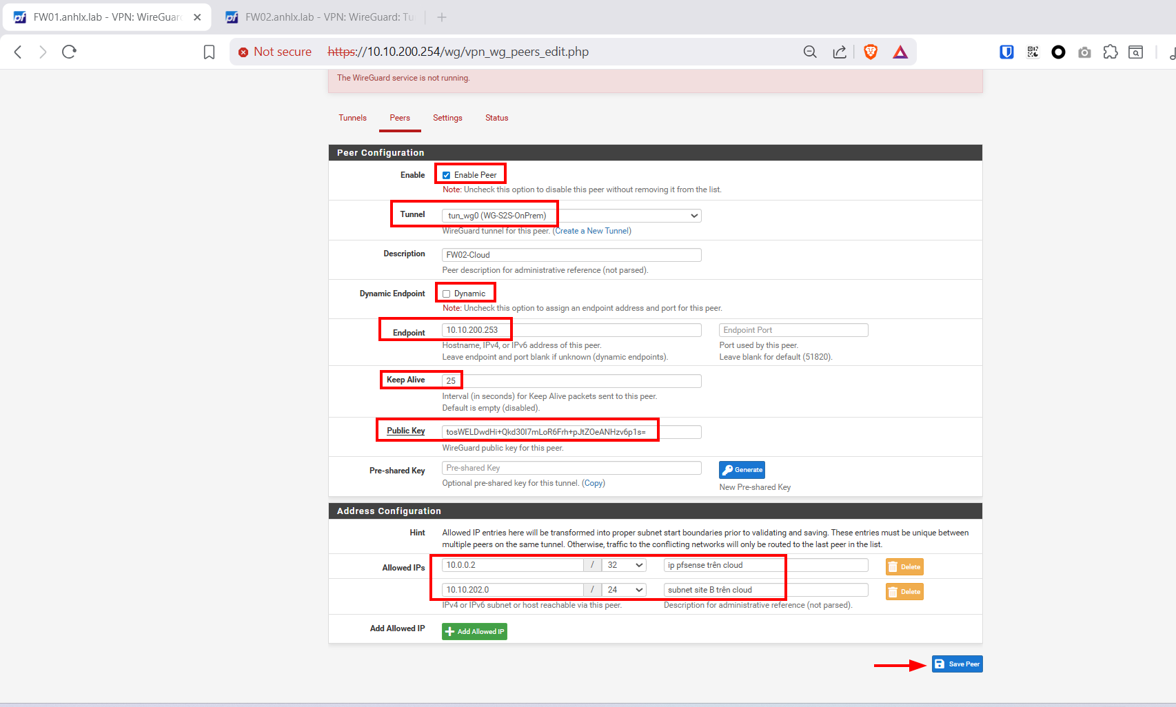 | Peer Endpoint | 10.10.200.253:51820 (IP public FW02) |