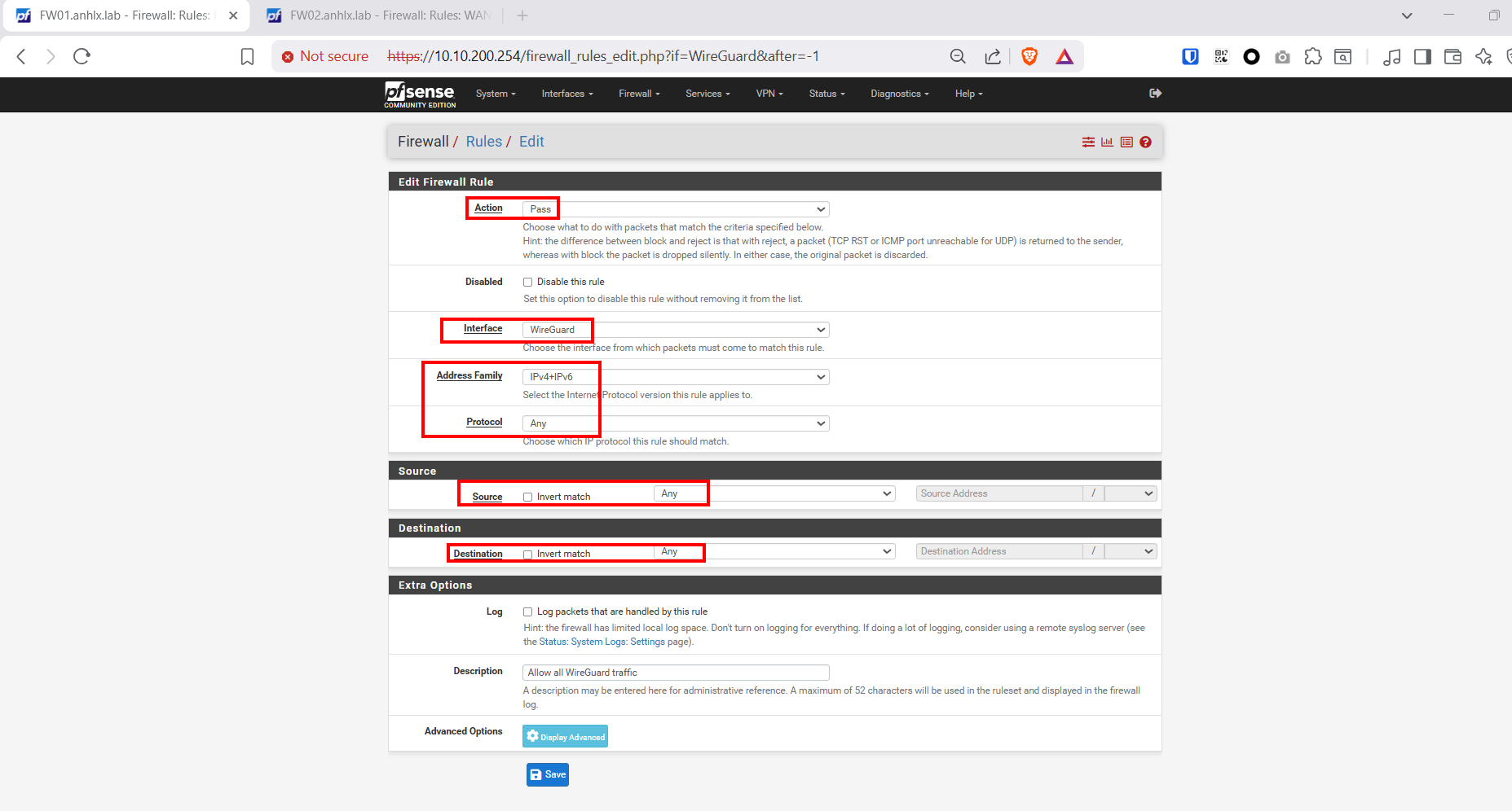 Thực hiện trên cả 2 pfSense (FW01 và FW02):