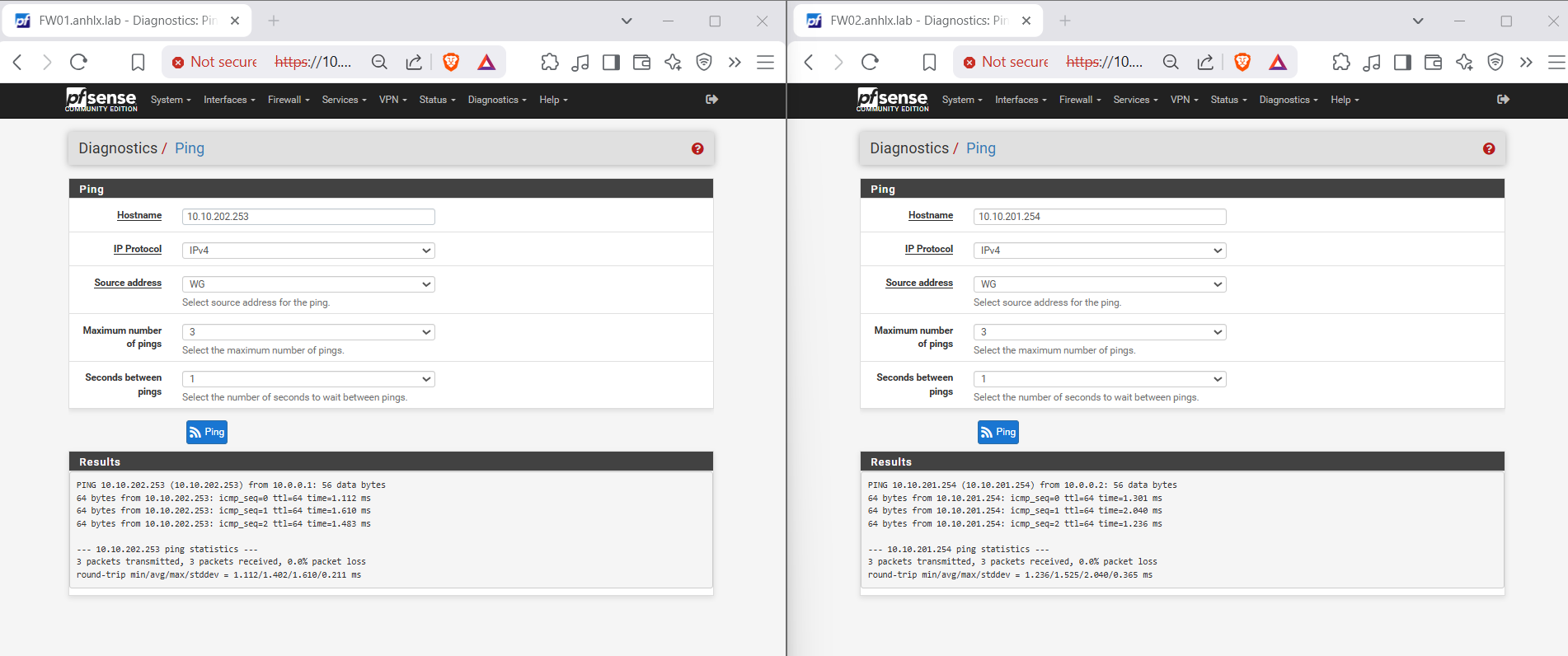 | IPv4 Address | FW01: 10.0.0.1/30 — FW02: 10.0.0.2/30 |