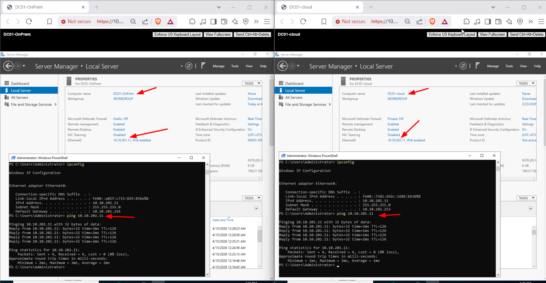 | Allowed IPs | 10.0.0.2/32, 10.10.202.0/24 | 10.0.0.1/32, 10.10.201.0/24 |