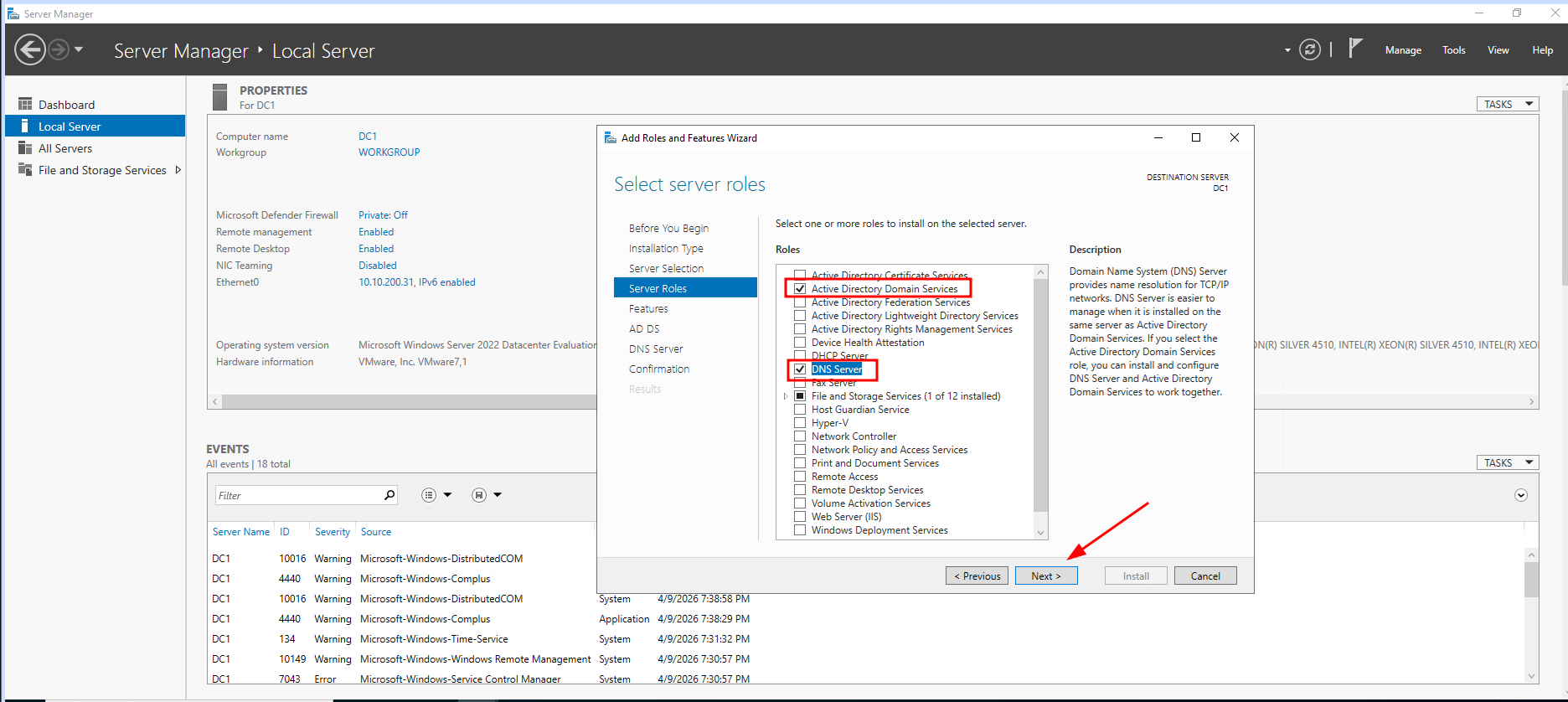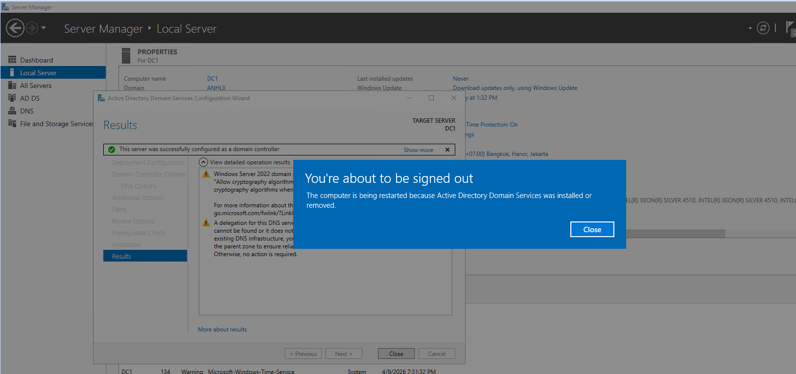 - 3. Cài đặt Domain Controller 1 (DC1)