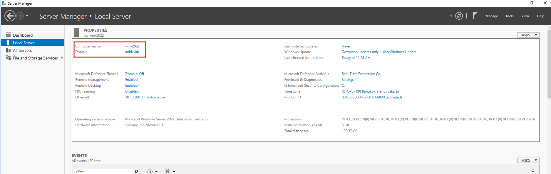 Sau khi restart, đăng nhập bằng ANHLX\Administrator.
